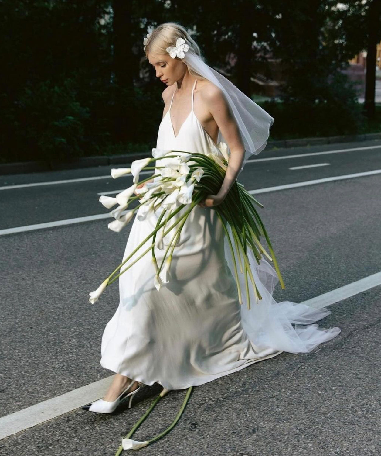 On this trend brides go for the clean girl aesthetic with elegant lines, fluid silhouettes, and understated accessories. Silk is the primary choice for this trend.