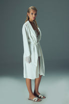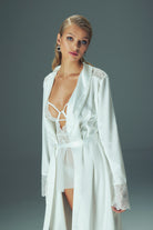Béatrice Saten Sabahlık koleksiyonunuzda vazgeçemeyeceğiniz parçalarınızdan olmak için hazır. Bilek kısımlarındaki dantel detayı beyazın zerafetine şık bir dokunuş katmaktadır.