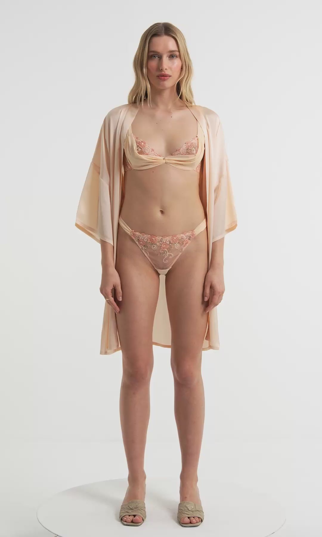 Kişiselleştirilebilir İpeksi Saten Sabahlık Somon