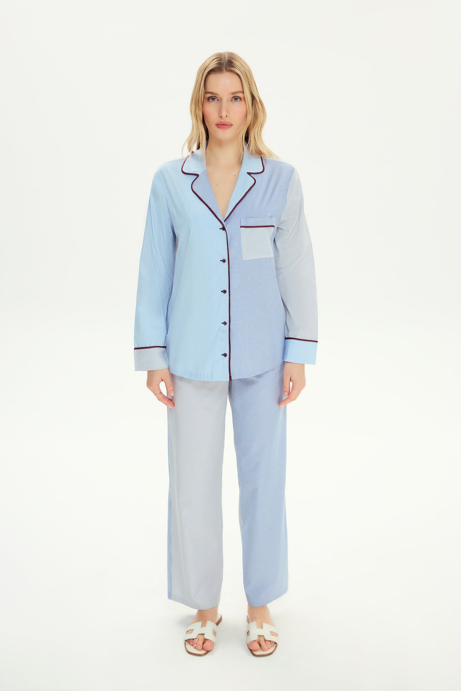 Lyron Koton Çizgili Biyeli Pijama Takımı