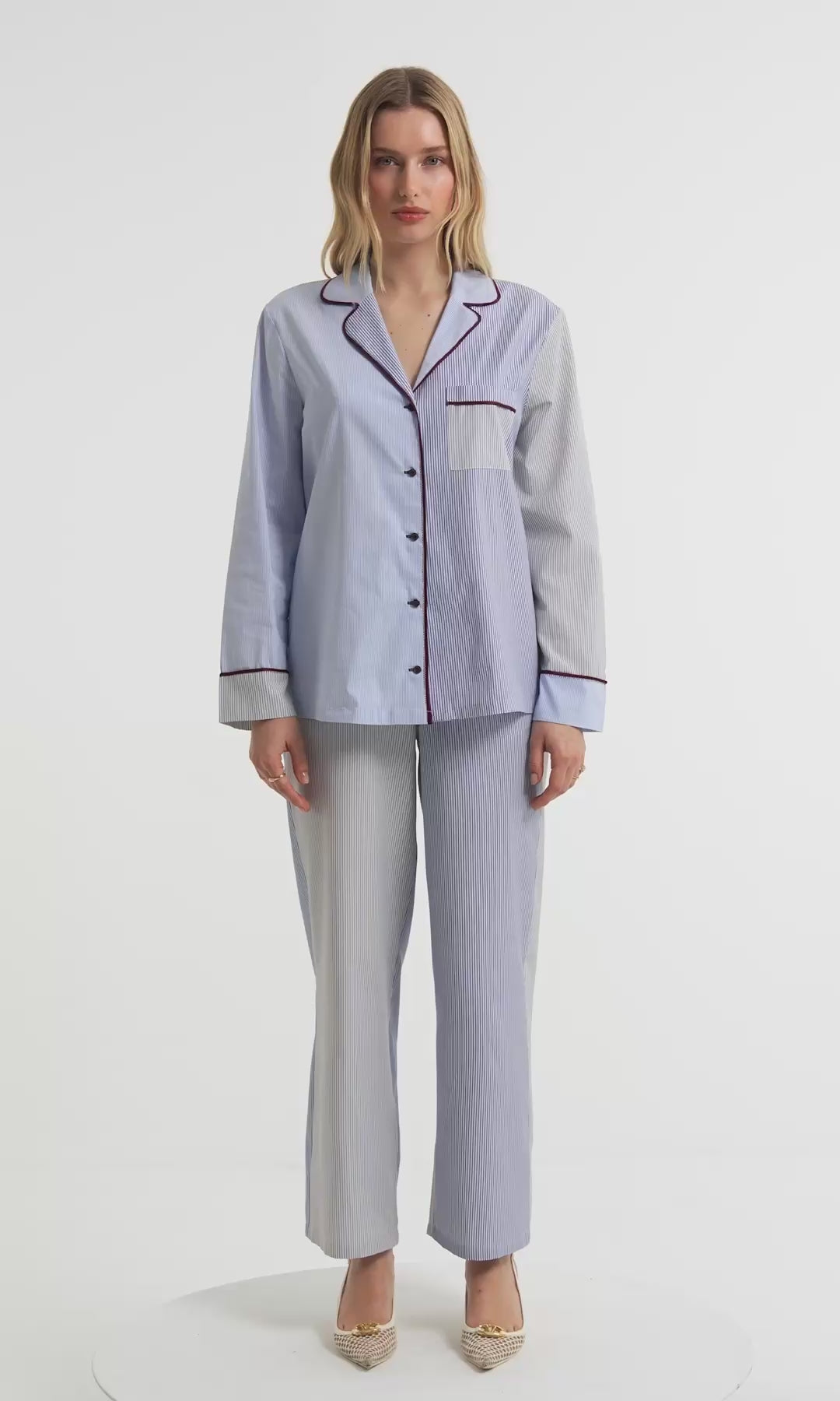 Favori çizgi desenlerimizin zarif renk kombinasyonlarıyla buluşarak eşsiz bir şıklık yaratıyor. Bordo biyeli detaylarıyla dikkat çekerken, yumuşak kumaşı ve rahat kesimiyle konforu ön plana çıkarıyor. Hem günlük kullanımda hem de özel anlarda mükemmel bir tercih.