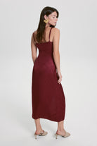 Marie Viskon Jakarlı Elbise Şarap Kırmızısı