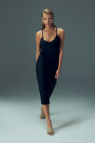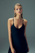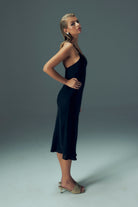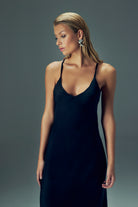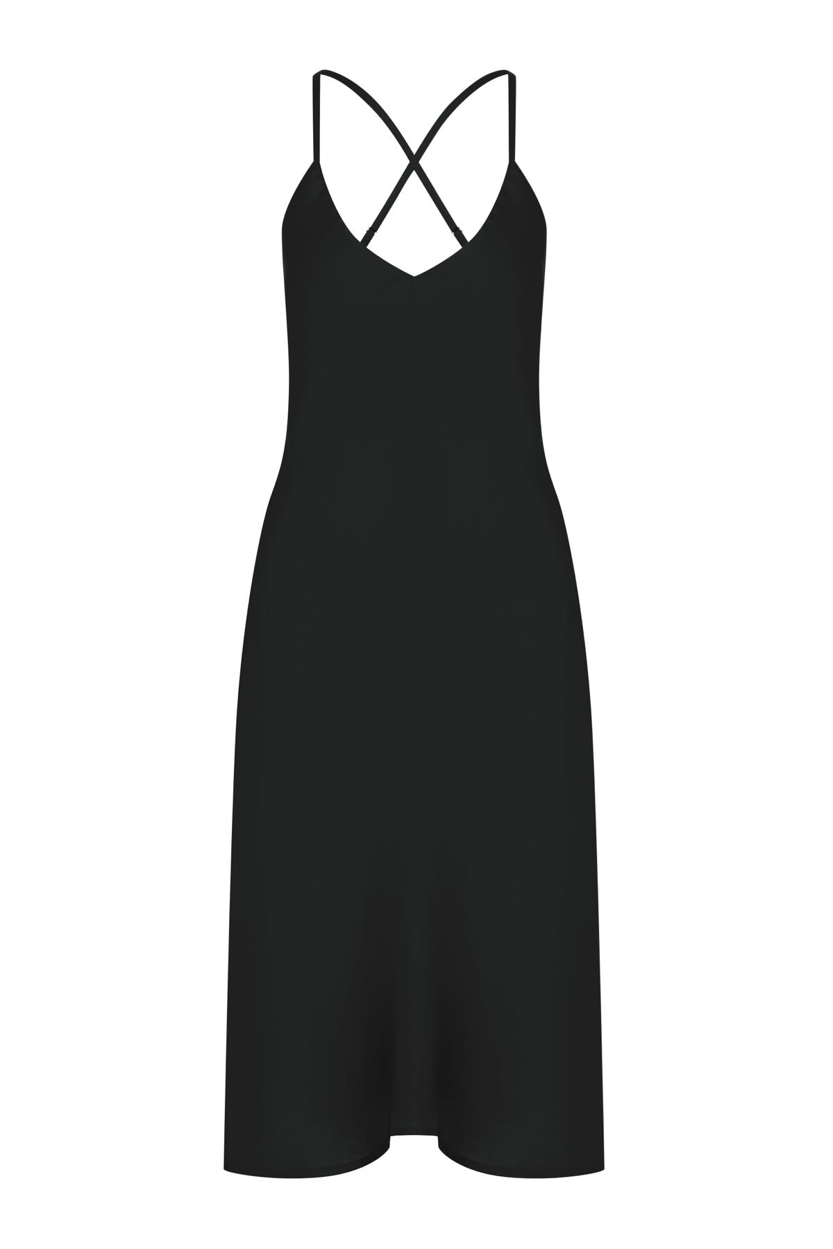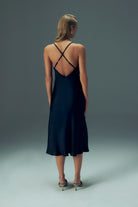 İpeksi saten elbise çapraz ve ayarlanabilir askı detaylıdır.