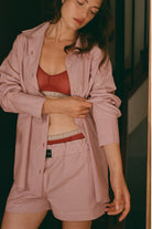 Stripes Koton Şort Takım Vişne