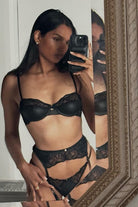 Koleksiyonumuzda ilk defa yerini alan vegan deri, romantik dantel detaylarımız ile buluşuyor. Vegan deri Tina tangası ve jartiyeri ile kombinleyebileceğiniz bu set size vegan derinin tutkusunu keşfedebilmenizi sağlıyor.
