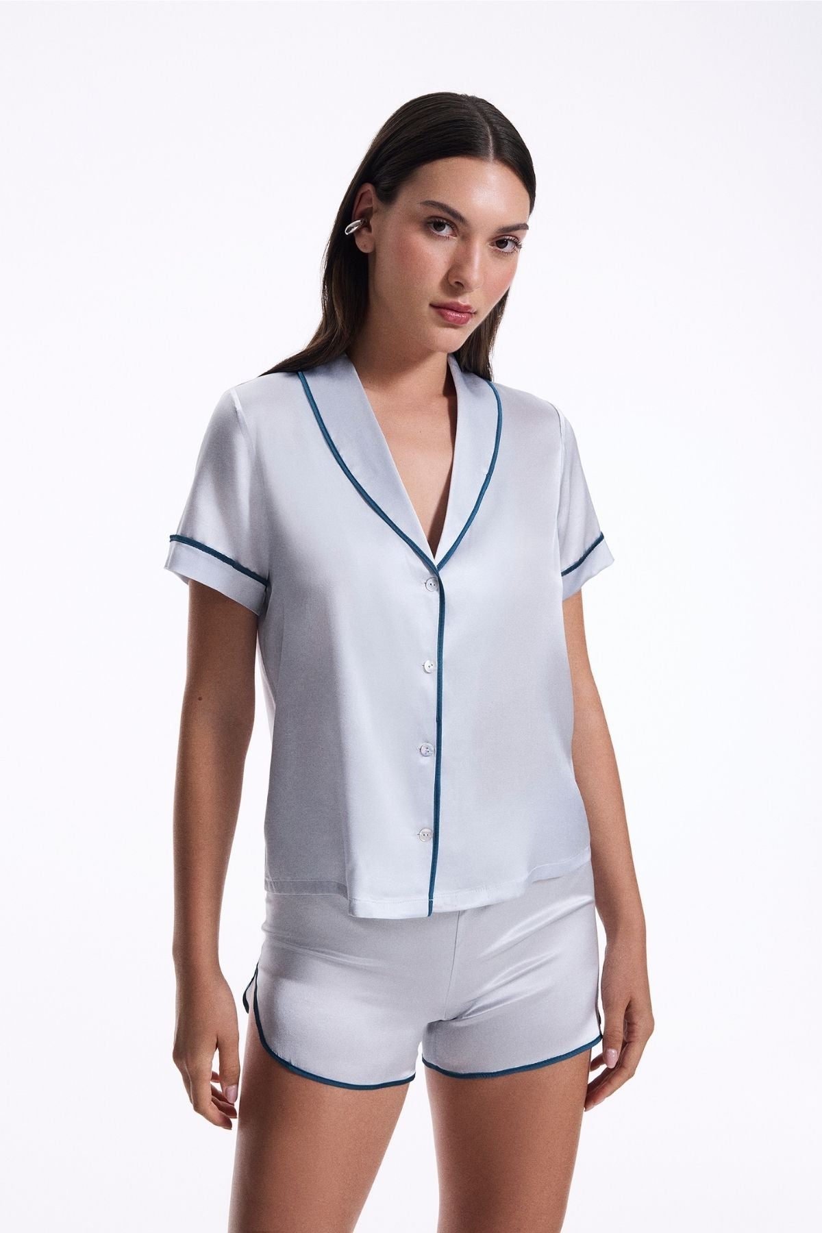 Zarif kontrast biyeli detayları, ipek yumuşaklığı ve şıklığıyla bu takım, her anınıza sofistike bir dokunuş katacak. Konforu ve şıklığı bir arada sunan bu tasarım, lüks ev giyiminin mükemmel örneği.