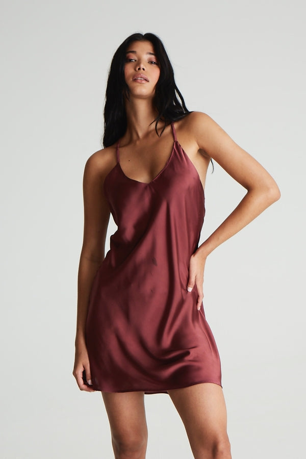 Marie Viskon Jakarlı Elbise Şarap Kırmızısı