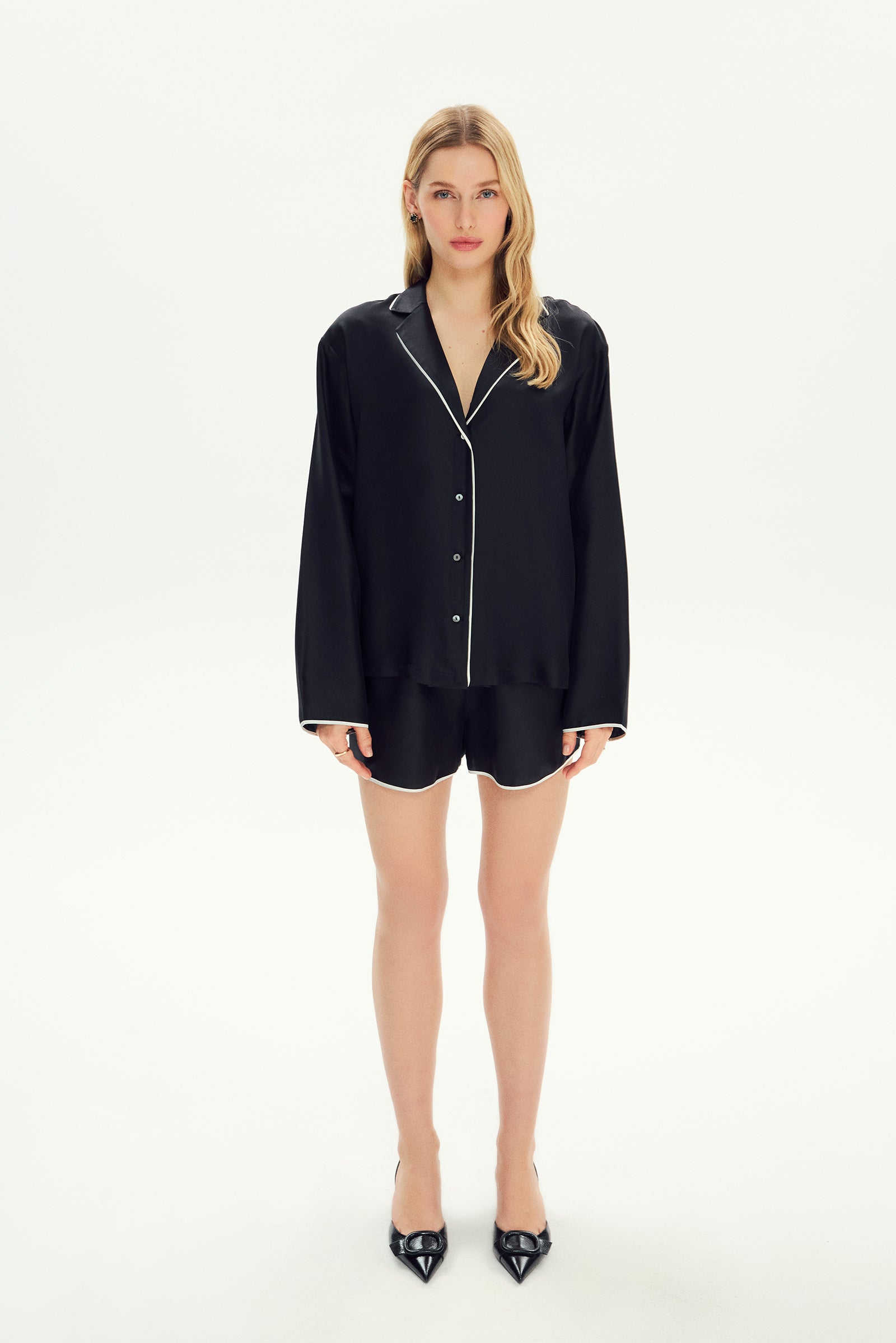 İpek Twill Adira Biyeli Şort Pijama Takımı