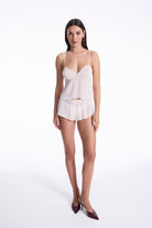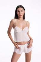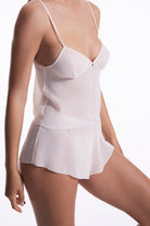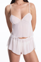 Gece giyiminize hafif bir dokunuş. Tamamen transparan şifon dokusuyla Love Set, ince askılı üstü ve etek siluetini anımsatan mini şortuyla bedenle uyum içinde hareket eder.