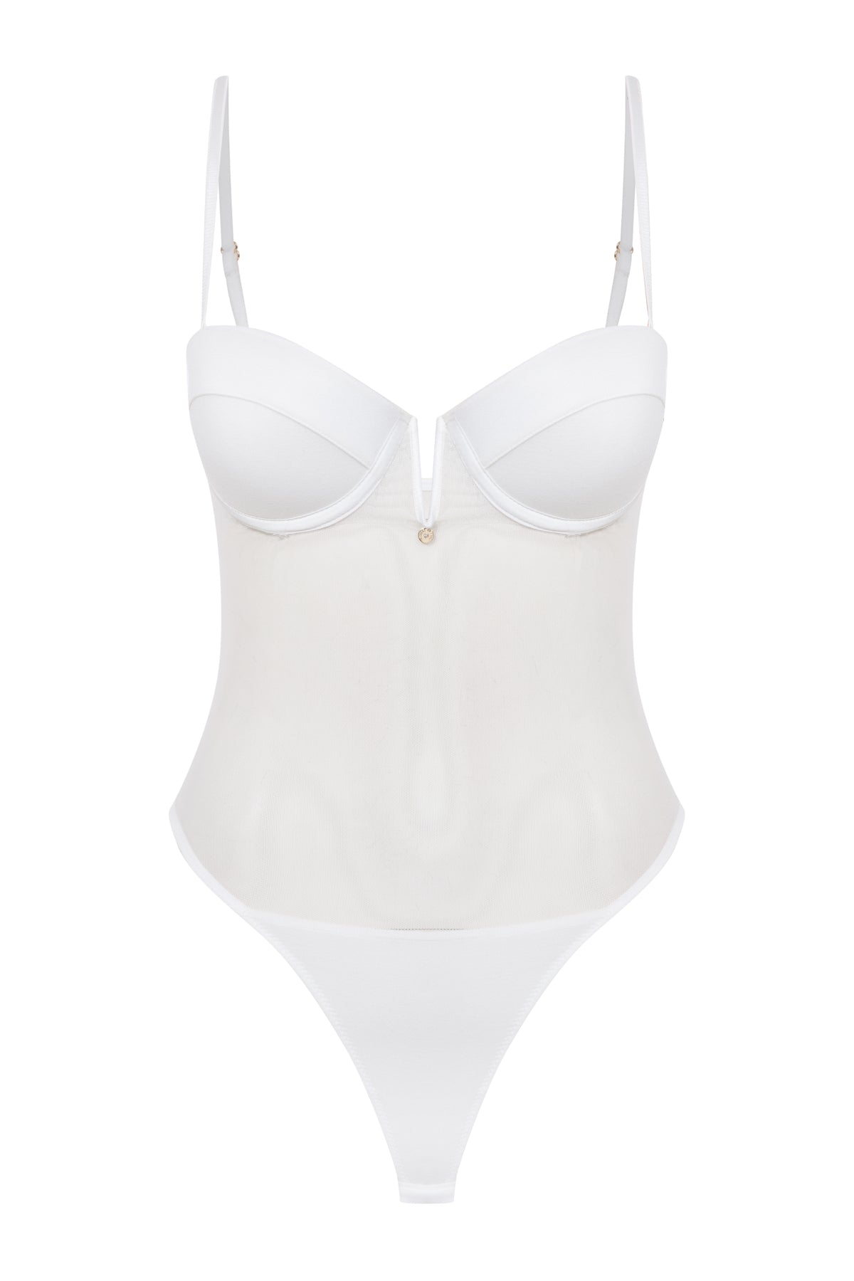 Viola Destekli Push Up Tül Bodysuit Beyaz