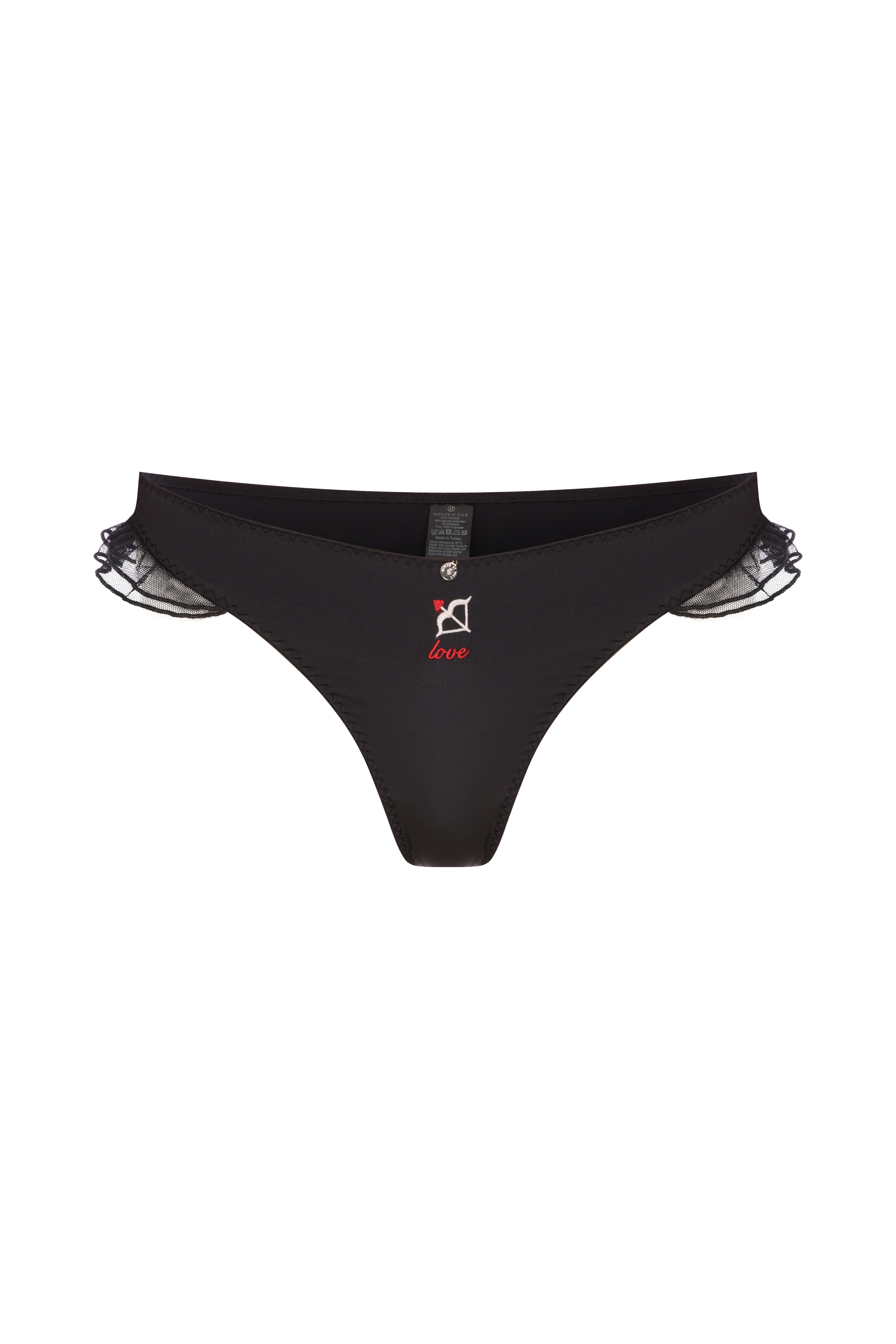Love Nakışlı Siyah Tanga