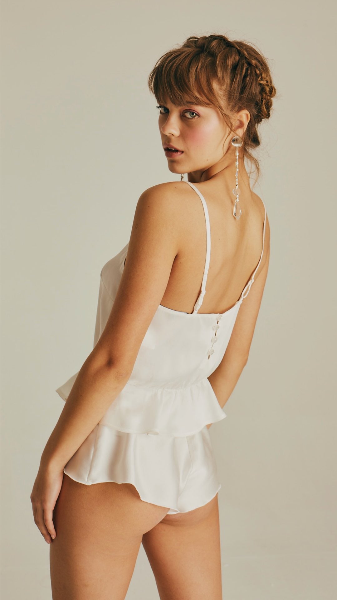 House of Silk İpek Fırfırlı Gelin Bluz Beyaz