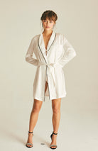 Çok şık zamansız bir sabahlık olan Charna Sabahlık. Gelinlerin de favori parçalarından biridir. İpek kumaşın vücudunuzdaki konforunun yerini hiç birşey tutamayacak. Sabahlık ve kuşağı olmak üzere iki parça şeklinde teslim edilir.