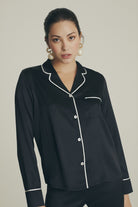 Zarif, şık ve zamansız çizgisiyle Lüks ipek Pijama takımımız! Lüks ipek uzun kollu klasik siyah Pijama takımı hem sokak hem de ev stilinize uygun bir görüntü içerir. Yumuşak dokusu ile yüksek kalite ipekten özenle hazırladığımız bu takımımız gardrobunuzda vazgeçemeyeceğiniz parçalardan olacaktır. Gerçek incilerden hazırlanmış düğmeleri ise size kendinizi prensesler gibi hissettirecek!