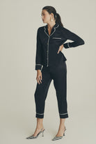 Kişiselleştirilebilir İpek Siyah Pijama Takımı
