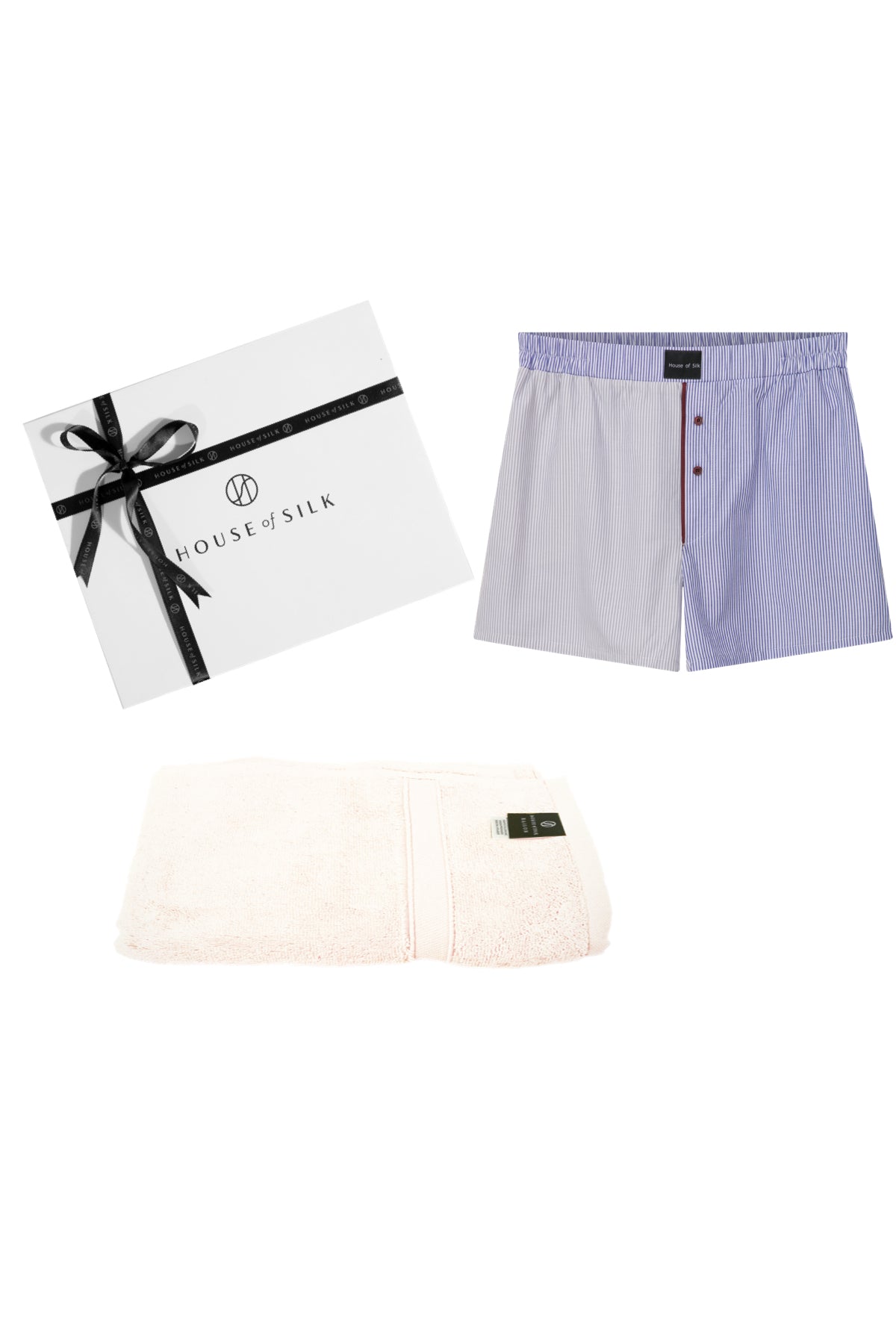 Yumuşak dokulu havlu ve kaliteli kumaştan üretilmiş boxerdan oluşan setimiz, hem işlevsel hem de şık bir hediye seçeneği.