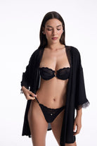 Bel kısmında ince dantel işçiliği, ön ortasında ise yumuşak saten dokunuşu bulunan Monica Tanga, ayarlanabilir yan lastikleriyle mükemmel uyumu garanti eder. Monica Sütyen ve Monica Bacak Aksesuarı ile kusursuz bir uyum yakalar.