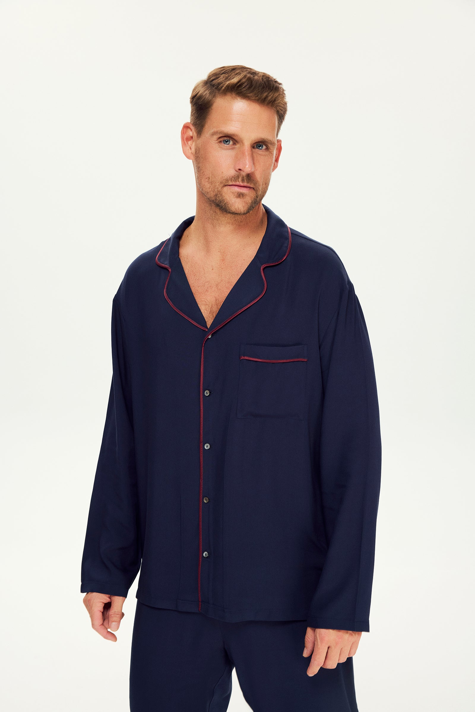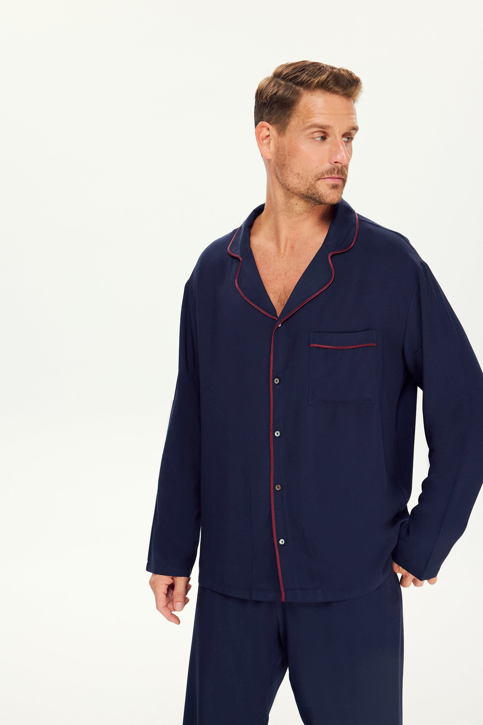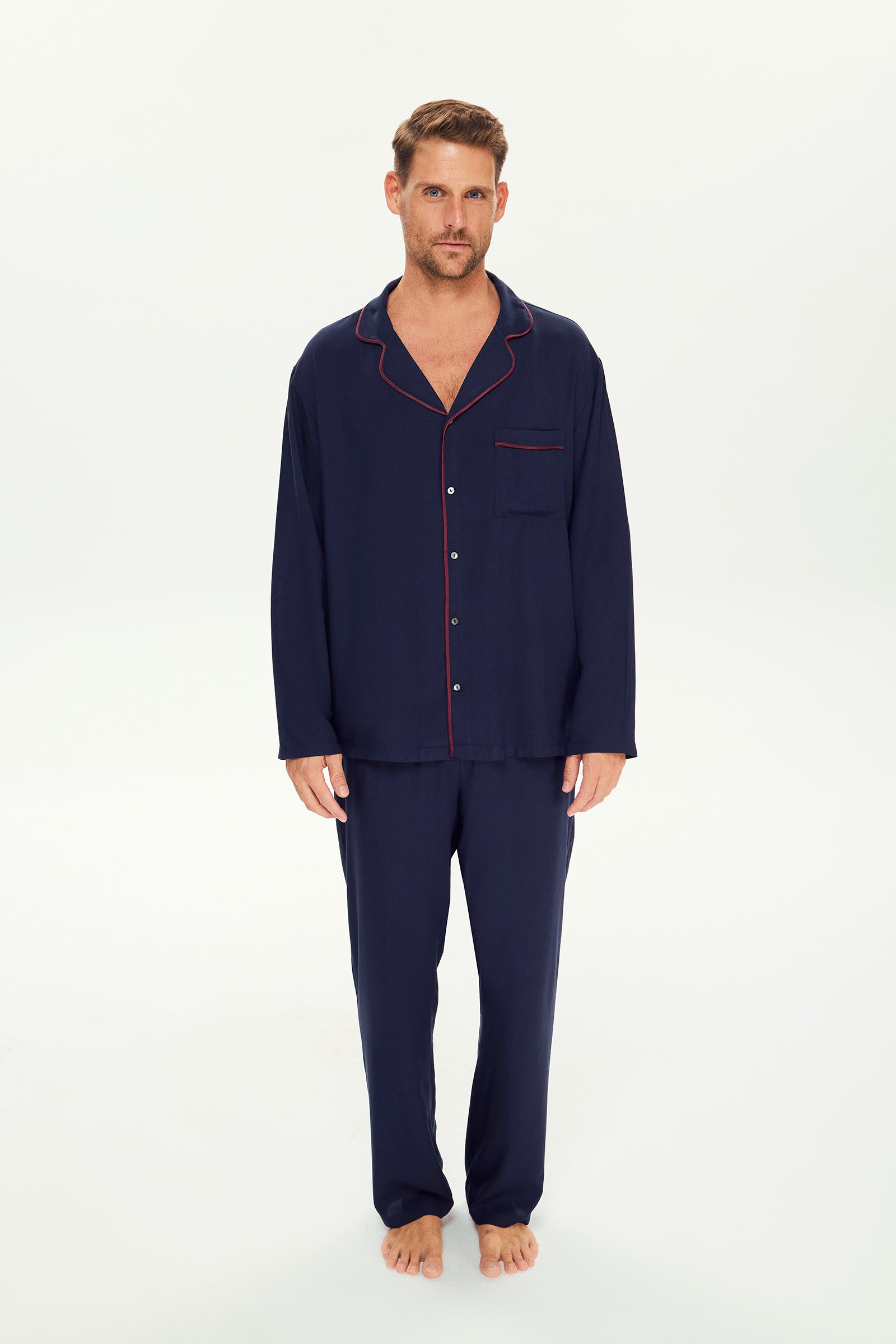 Indigo Extra Yumuşak Viskon Biyeli Erkek Pijama Takımı