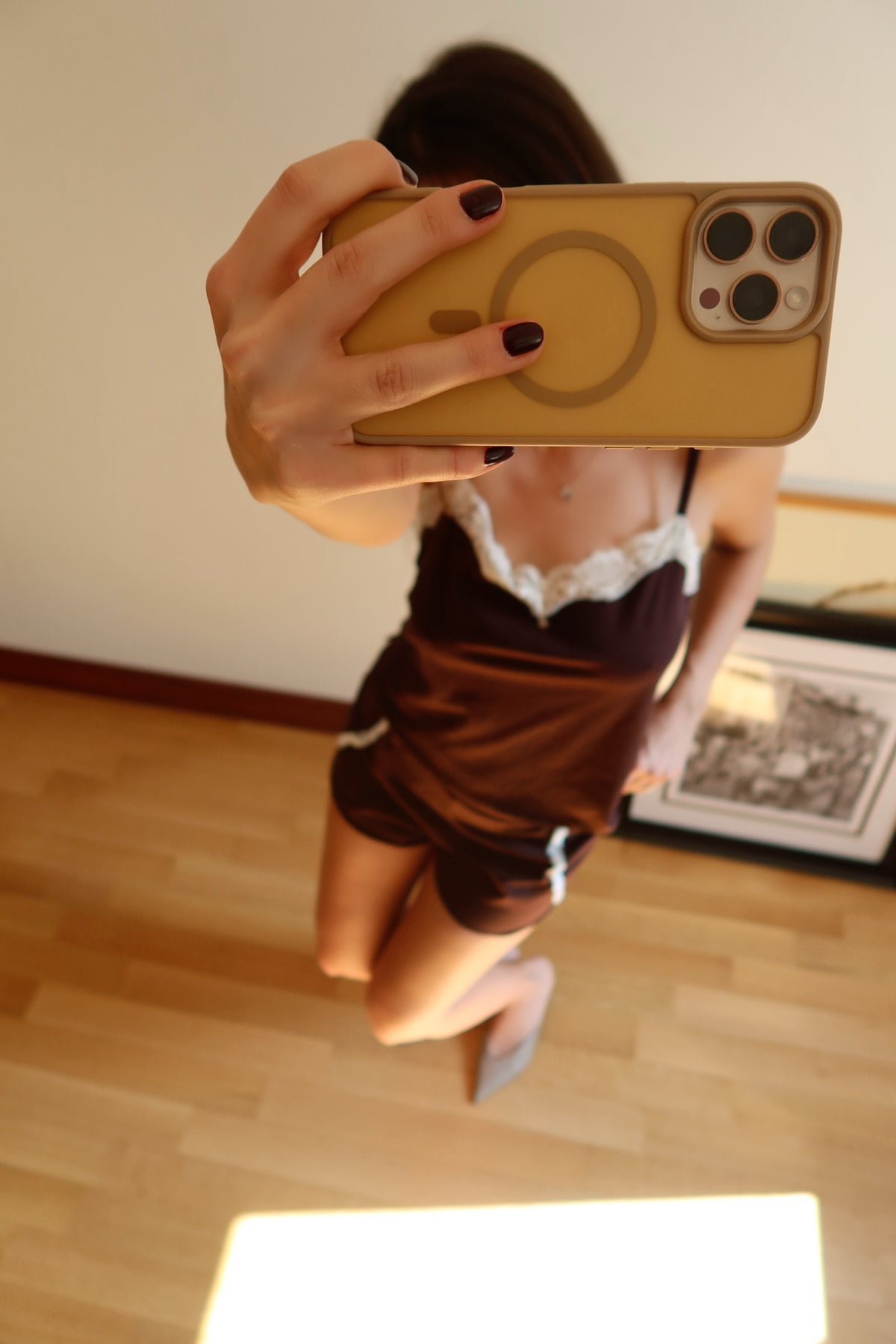 Noelle Pijama Takımı ve Göz Maskesi Kahverengi