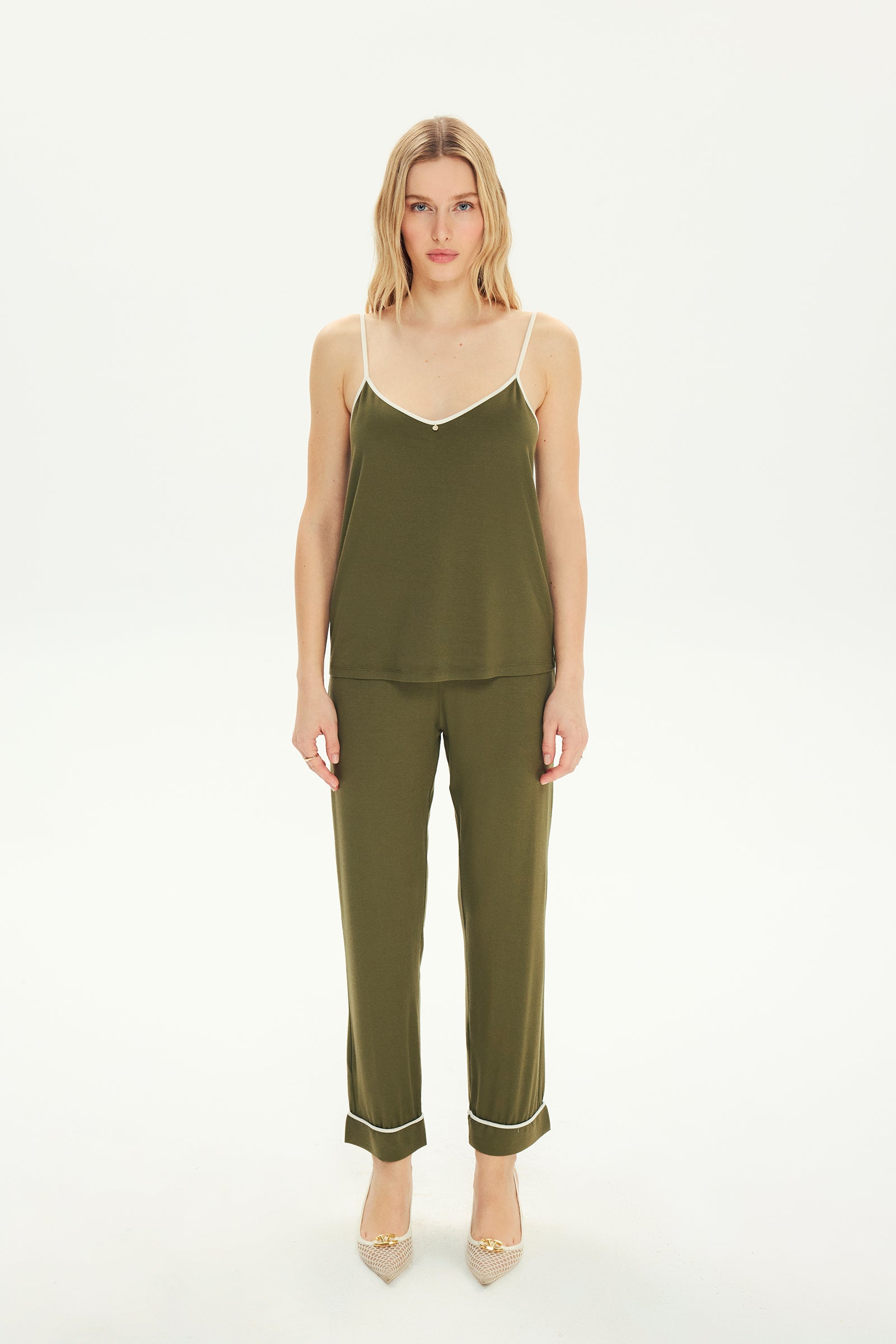 Levia koleksiyonun en yumuşak dokunuşu ile karşınızda. yeşilin büyüleyici tonu ve özenle tasarlanmış biye detaylarıyla sofistike bir şıklık sunuyor. En yumuşak dokularla buluşan bu tasarım, ciltte adeta bir ikinci ten hissi yaratıyor.