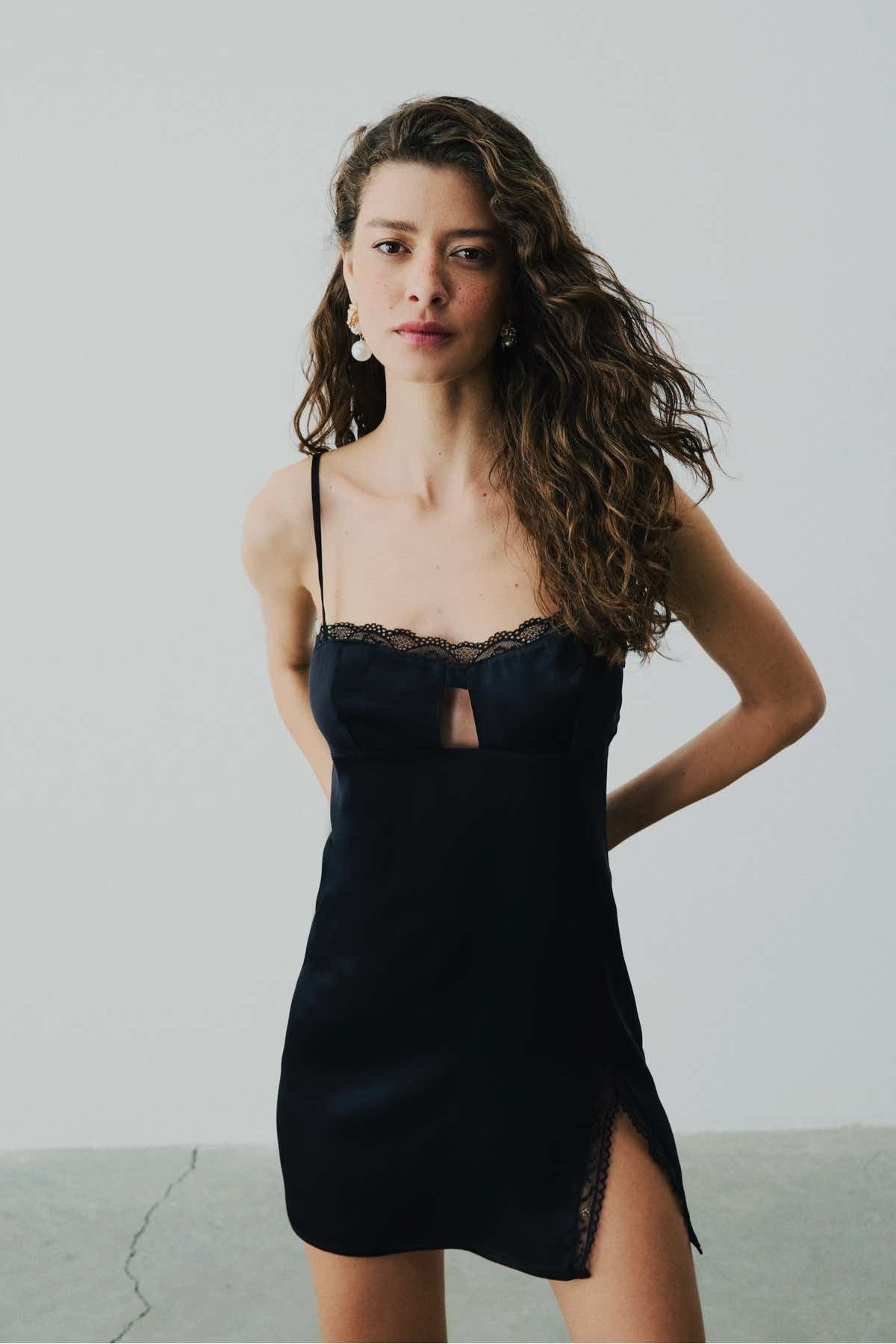 House of Silk İpek Adriana Dantelli Yırtmaçlı Elbise Siyah