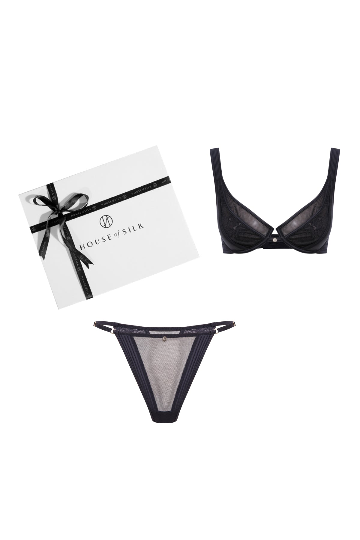 Dakota Set, siyah gül detaylı danteli ve kenarlarında yer alan zarif nervür detaylarıyla büyüleyici bir tasarım sunuyor. Hem romantik hem de modern bir dokunuşla tasarlanan bu parça, zamansız güzelliği ve güçlü bir duruşu bir araya getiriyor.