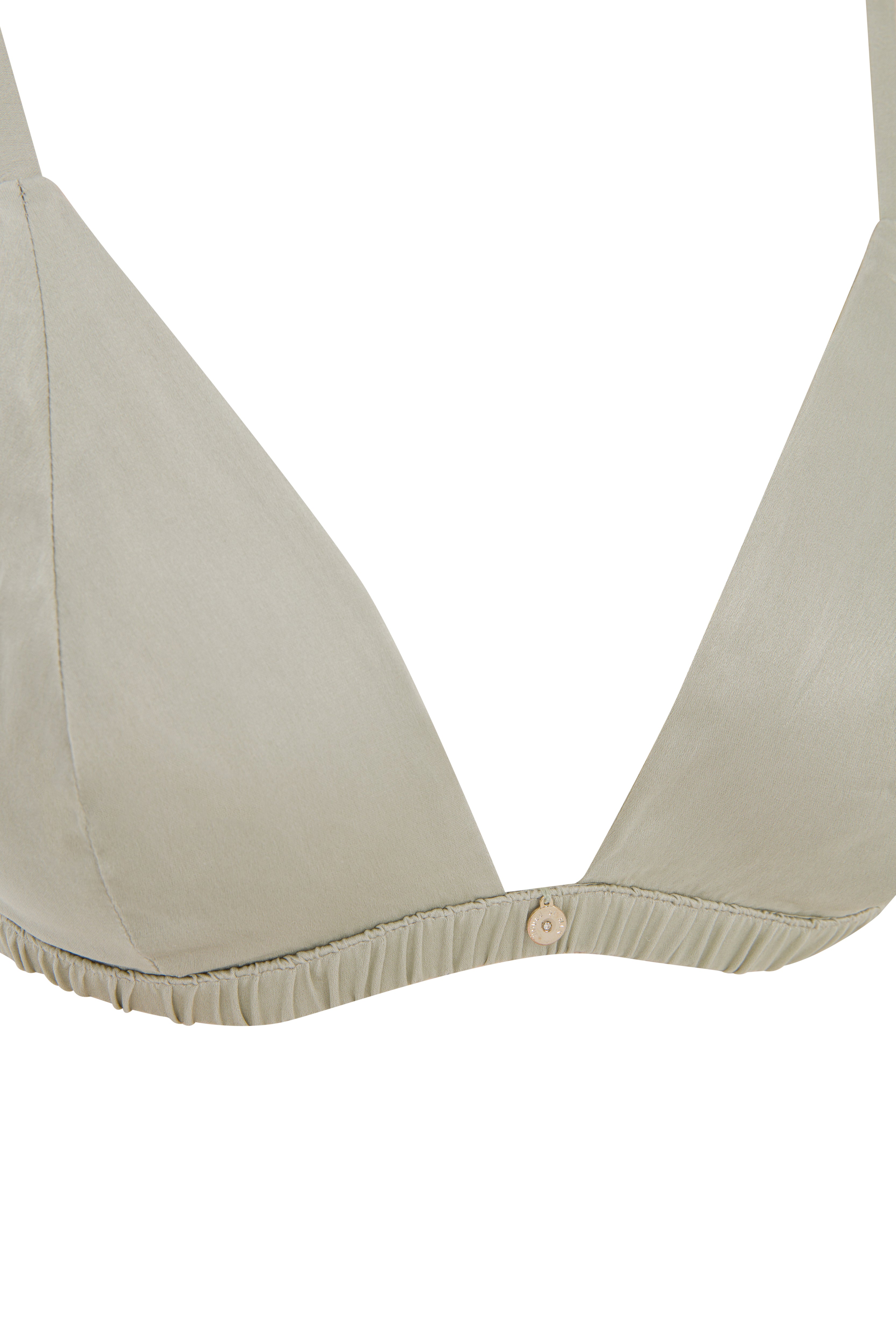 Üçgen kesimli, balensiz sütyen; yumuşak ipek dokusuyla hafiflik ve konfor sunar. Ayarlanabilir askıları ve arkada kopça detayı sayesinde kişiye özel uyum sağlar. Minimal tasarımıyla şıklığı ve rahatlığı bir arada yaşayın.