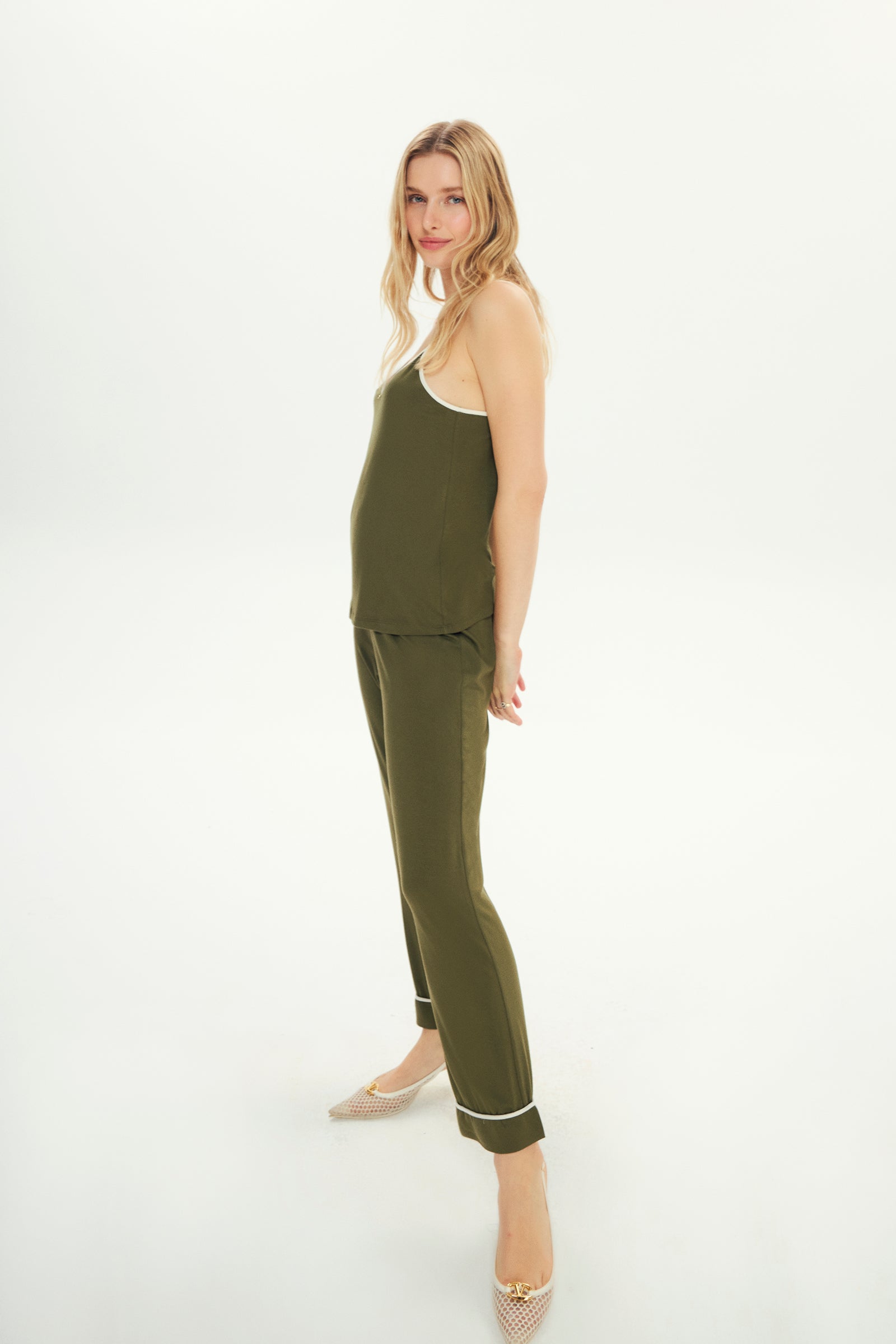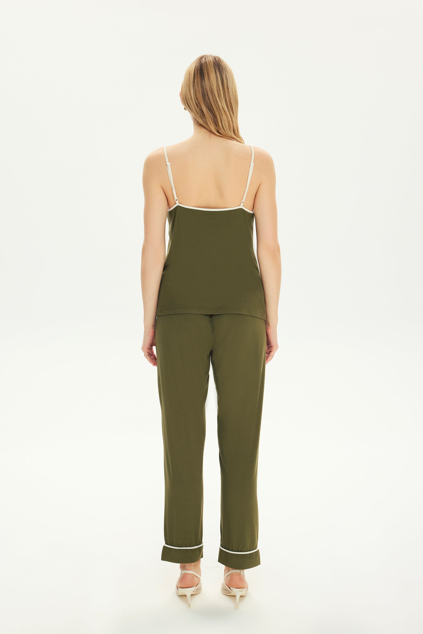 Levia is here with the softest touch of the collection. It offers a sophisticated elegance with its fascinating green tone and carefully designed piping details. This design, which meets the softest textures, creates a feeling of a second skin on the skin.