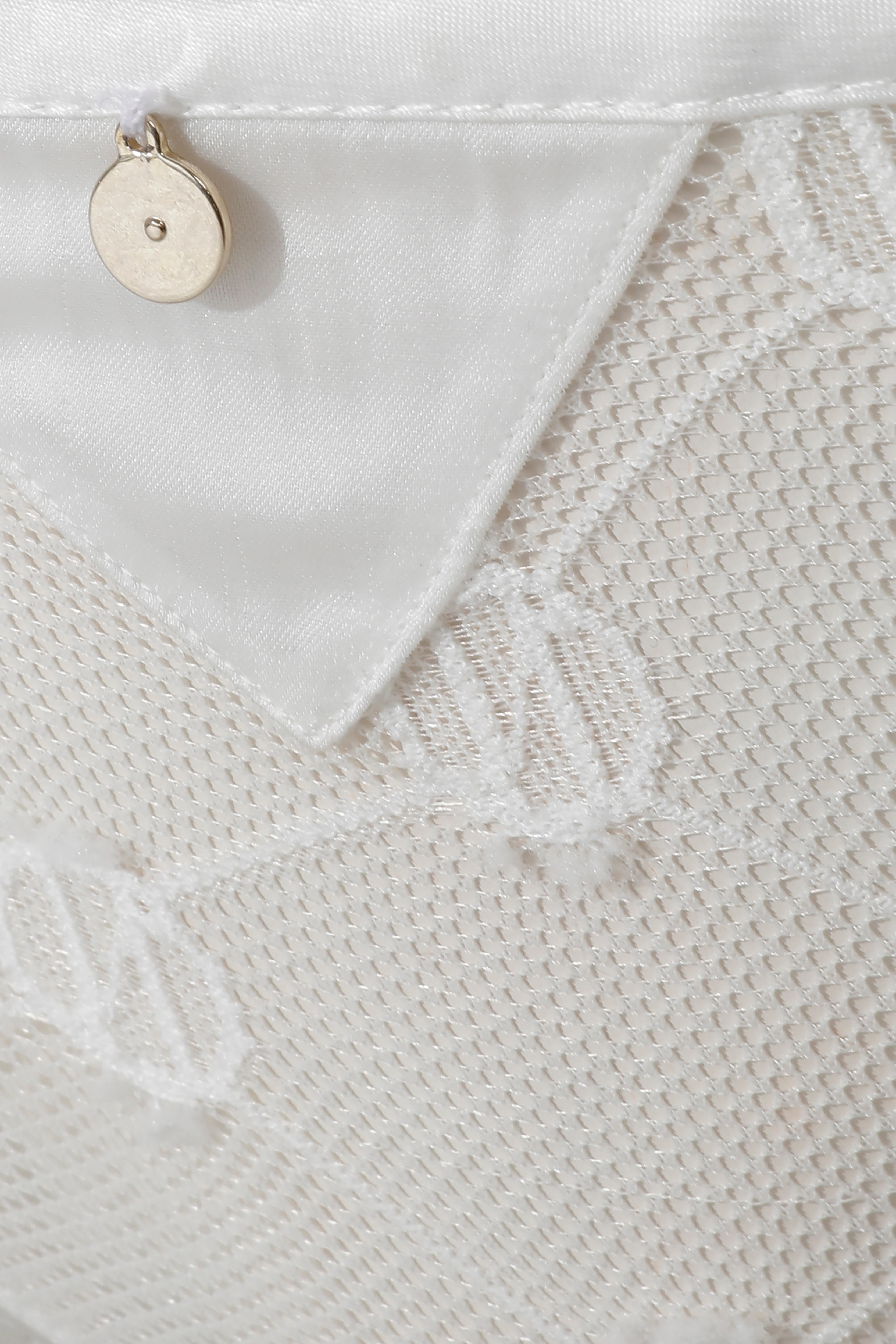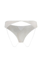 - There are triangular satin pieces covering our fabric with the House Of Silk logo.