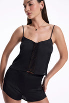 For Someone Special Hediye Seti özel birine dokunmanın en zarif yolu. Hafif ve akışkan dokusuyla Janet Askılı Set, bedenle uyum içinde hareket eden romantik bir siluet sunarken; ona eşlik eden İpek Üçgen Tanga Siyah, görünüme duyusal bir detay katıyor.