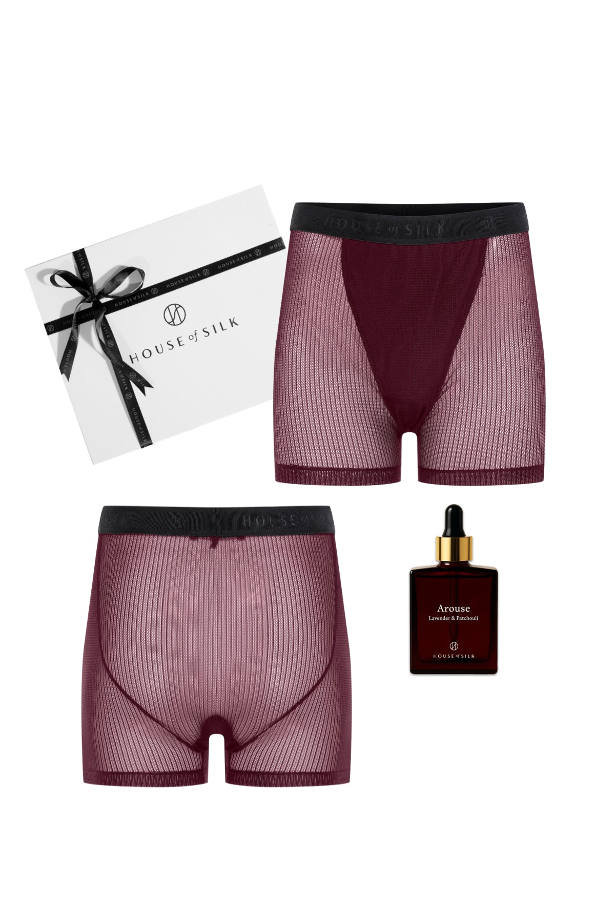 Fleur Tül Boxer, hafif dokusu ve şeffaf detaylarıyla gün boyu rahatlık sağlar. Seti tamamlayan Arouse Vücut Yağı, cildi nemlendirirken lavanta ve paçuli aromasıyla duyularınızı sakinleştirir ve kendinize ayırdığınız anlara keyif katar.