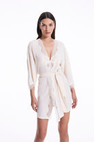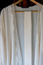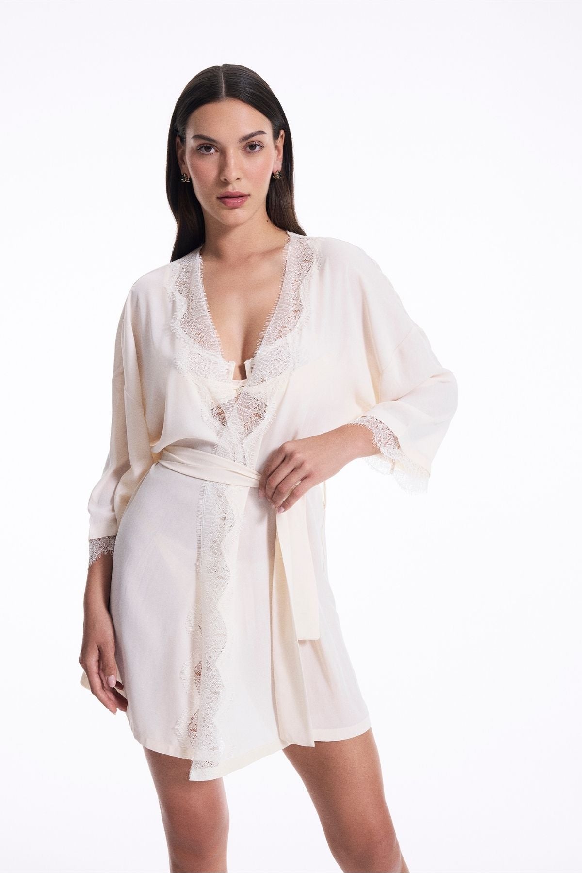 Hafif şifon dokusuyla zarif bir siluet sunan Caroline Sabahlık, dantel detaylarıyla romantik bir duruş kazanıyor. Dantel; kol uçlarında ve yaka hizasından etek ucuna kadar zarifçe ilerler. Uyumlu bel kemeriyle birlikte teslim edilir. Standart bedendir.
