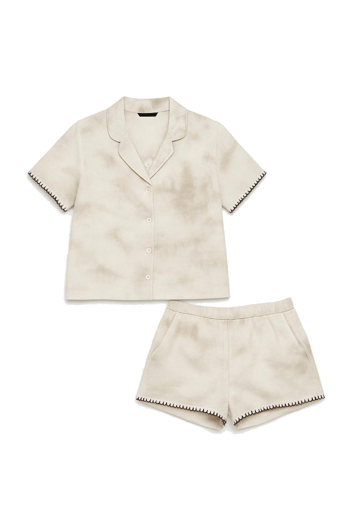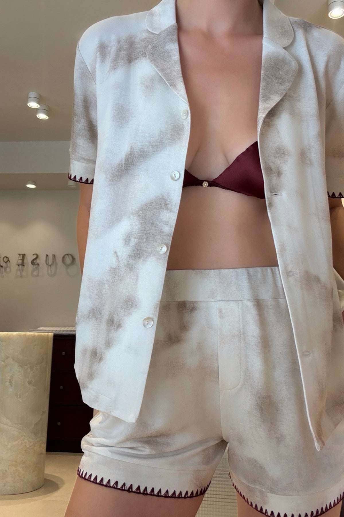 Talia Viskon Mermer Desenli Şort Takım Bej