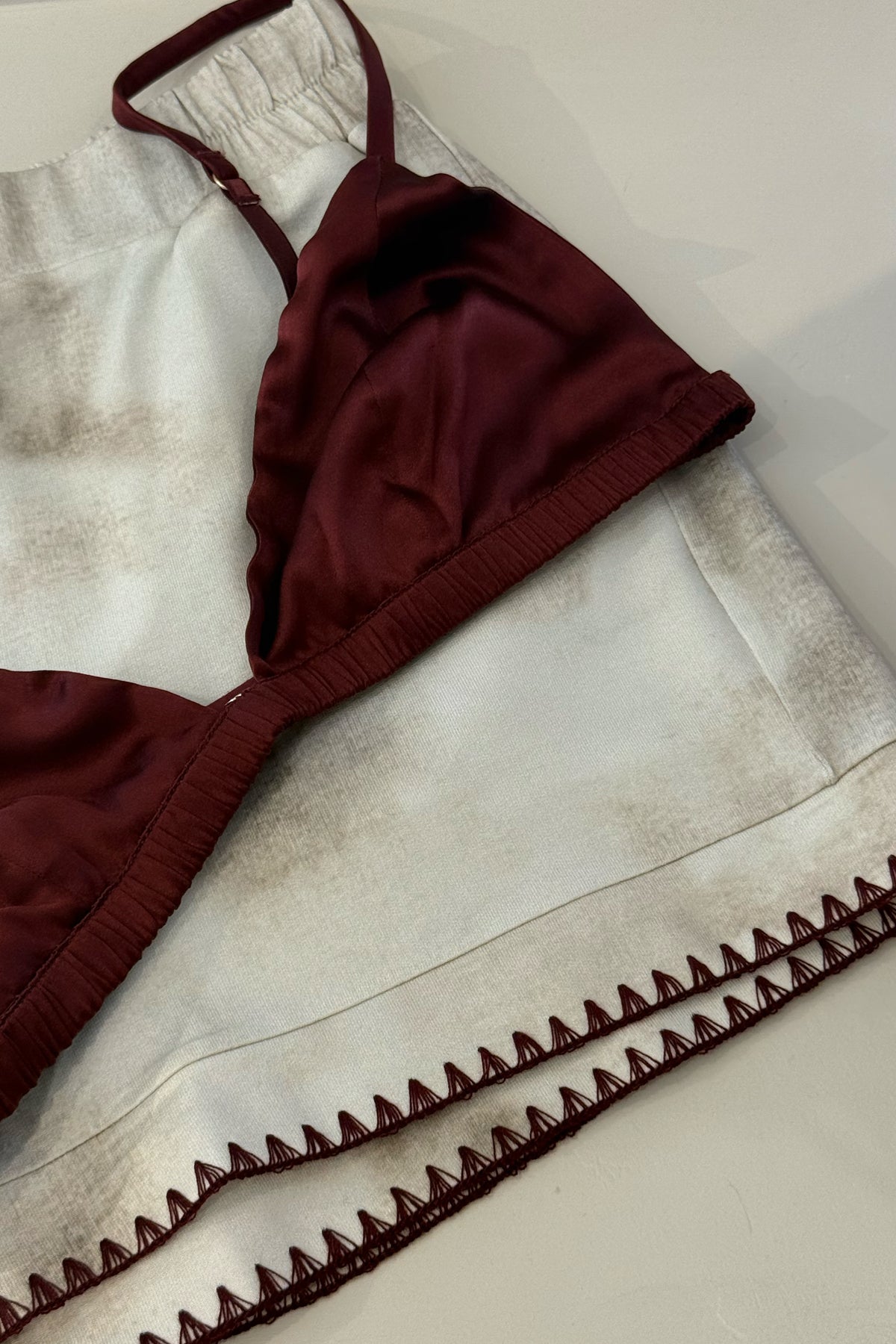 Çok yumuşak, şık ve rahat kumaştan tasarlanan Talia dolabınızdaki en yumuşak pijama takımı olmaya aday. Cepte ve şortta renkli kontrast dikiş detayına sahiptir. İki parça takım olarak teslim edilir.